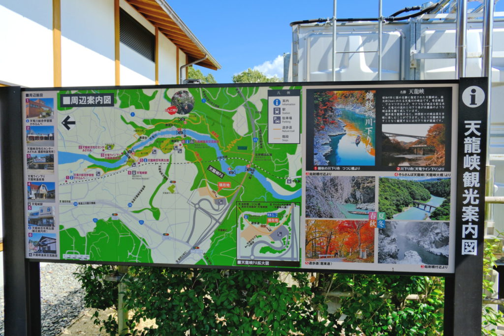 The nearest station is Tenryukyo Station on the JR Iida Line, and it takes less than 5 minutes on foot to the walking trail.